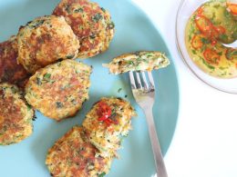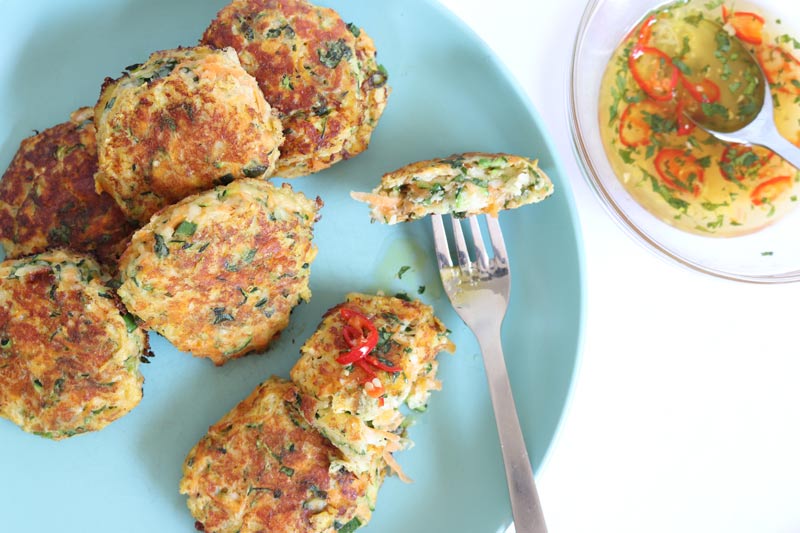 - Serve the cakes hot with spoonfuls of the chilli dressing over the top.