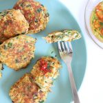 Add the beaten eggs and mix well, then stir in 3 tablespoons of the almond flour. The mixture should be sticky enough to form into patties. If it’s not sticky enough add a bit more almond flour.